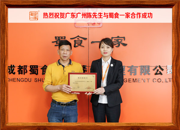 热烈祝贺广东广州陈先生与蜀食一家合作成功