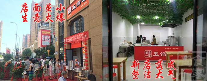 在网站上搜索,实体店考察,终于敲定开一家早餐店。蜀食一家“五馅包”品牌大,名气响,自然成为他们考察的第一对象。