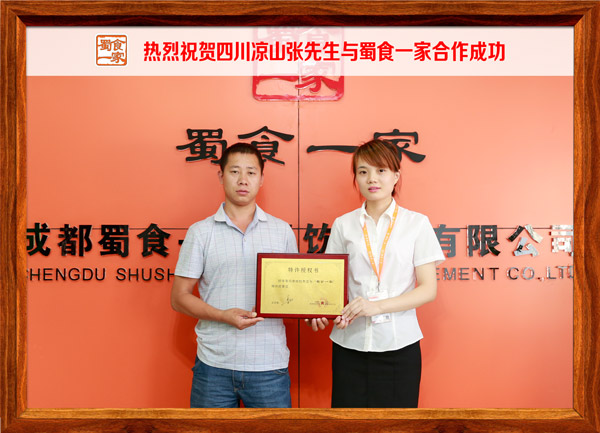 热烈祝贺四川凉山张先生与蜀食一家合作成功